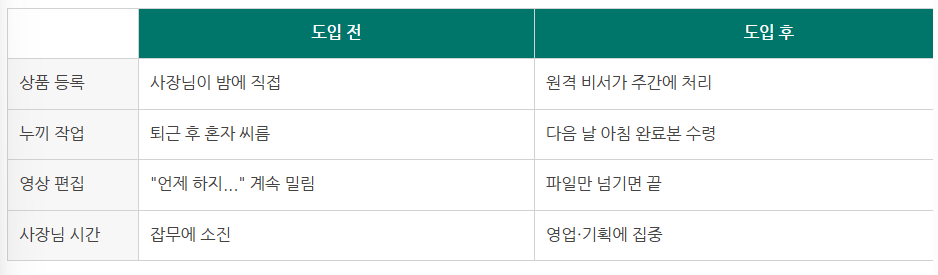 반복되는 온라인 작업은 믿을 수 있는 스태프한테 넘기고, 그 시간에 매출 만드는 일에 집중하는 게 맞다고 생각해서 이 서비스를 만들었습니다.